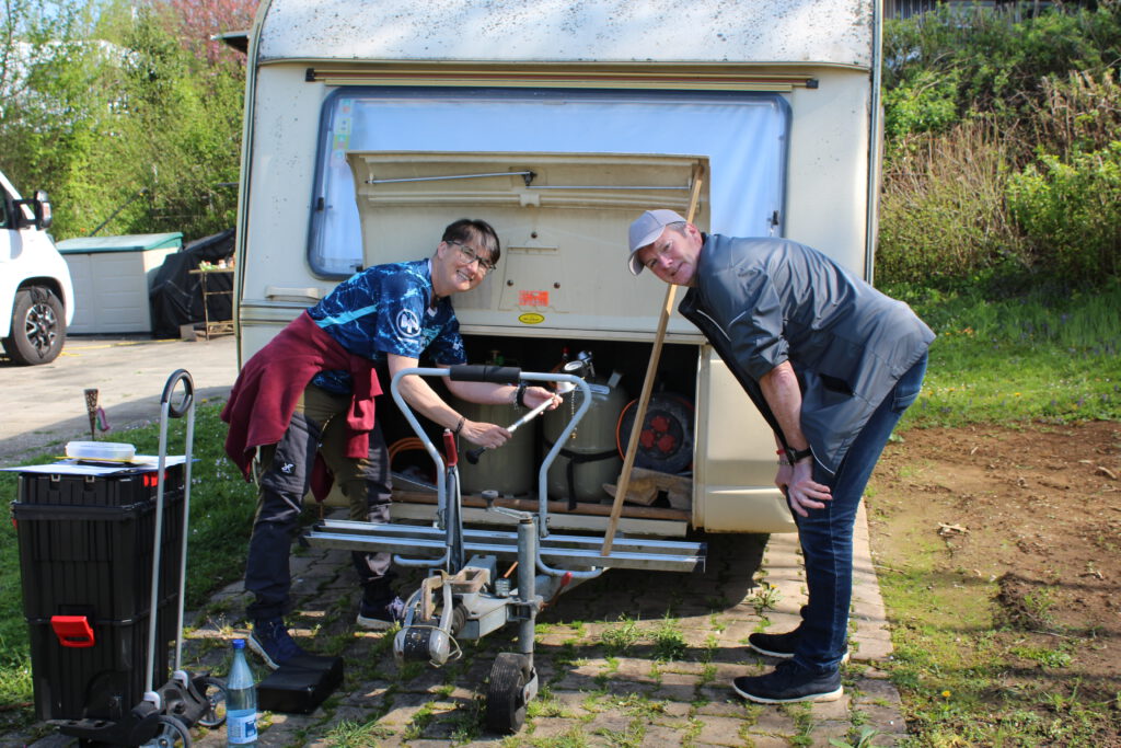 Am Freitag und Samstag verwandelte sich das Gelände in ein wahres Bienenparadies – zumindest, was den Arbeitseifer unserer Gasprüfer anging. Helmuth Eckl, Winni Wehde, Heiko Lehmann, Timo Kirnberger, Danny Göhe und Uta Trautewig schwärmten aus und nahmen die Gasanlagen von Wohnwagen und Wohnmobilen genau unter die Lupe. Dabei durfte Uta, die als frischgebackene Gasprüferin ihre Premiere feierte, an der Seite von Heiko Lehmann wertvolle Praxiserfahrung sammeln. Das Ergebnis kann sich sehen lassen: 38 überprüfte Fahrzeuge, davon lediglich eines ohne neue Plakette – eine wirklich herausragende Quote.